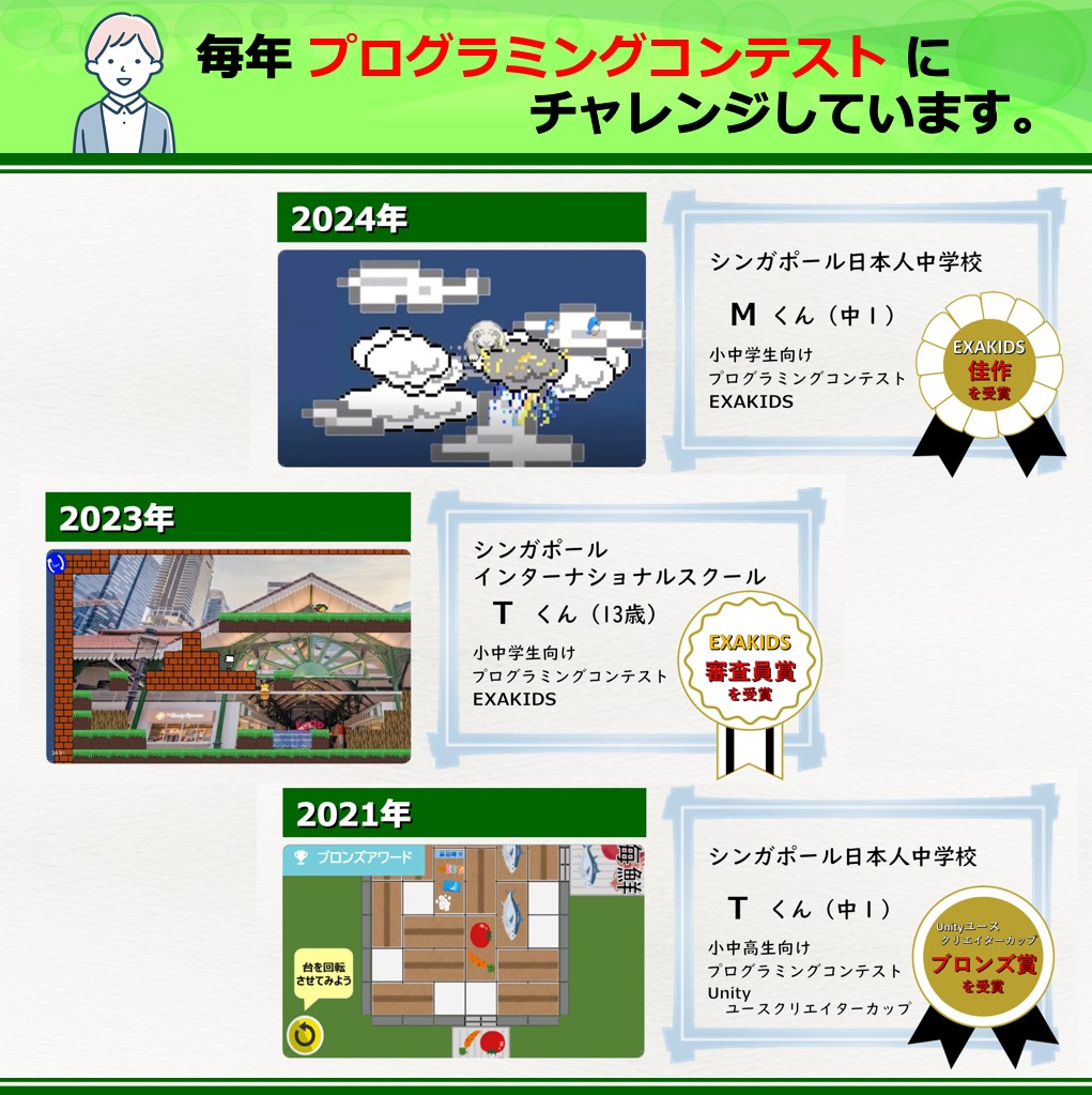 毎年プログラミングコンテストへの参加にチャレンジします。