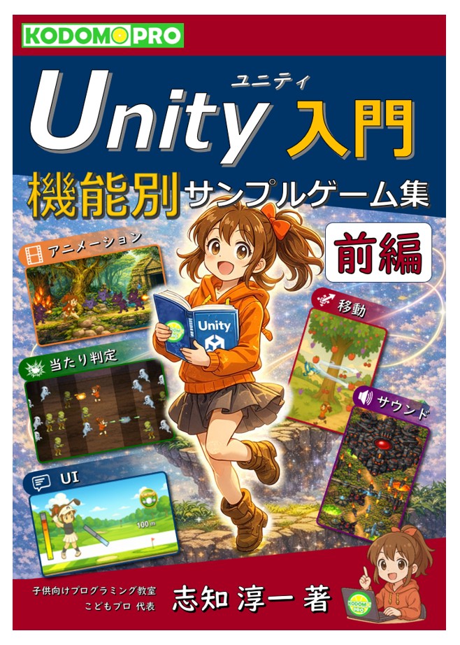 各章独立した形で各Unity機能「移動機能」「当たり判定」「UI」「アニメーション」「サウンド」に特化したサンプルゲーム作成と解説を行っています。