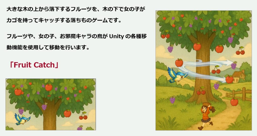 Unityの各種「移動機能」の解説と、それらの機能を網羅的に使用したゲームとして落ちものアクションゲームを作成します。