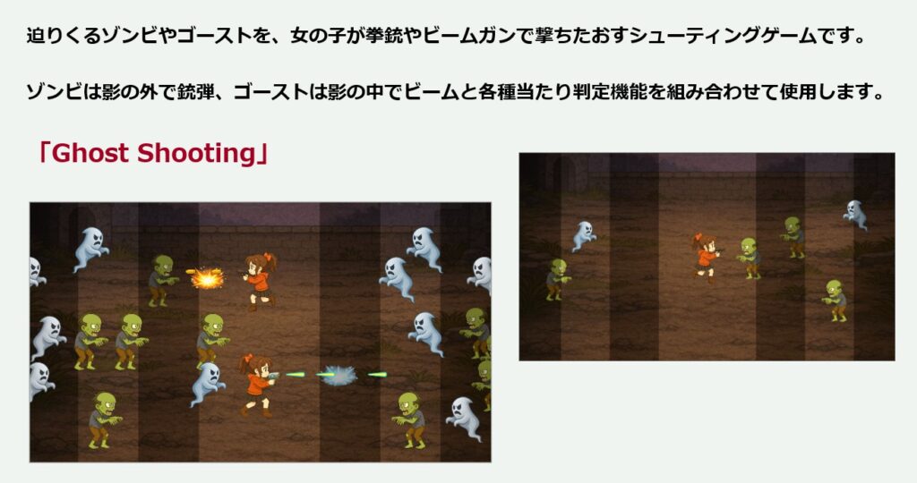 これら各機能に特化した本格的なサンプルゲームを作成します。